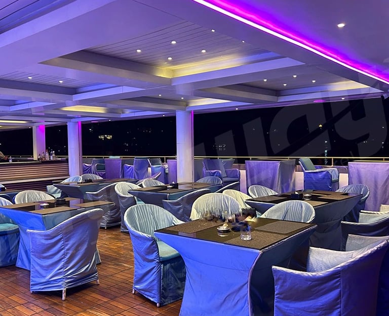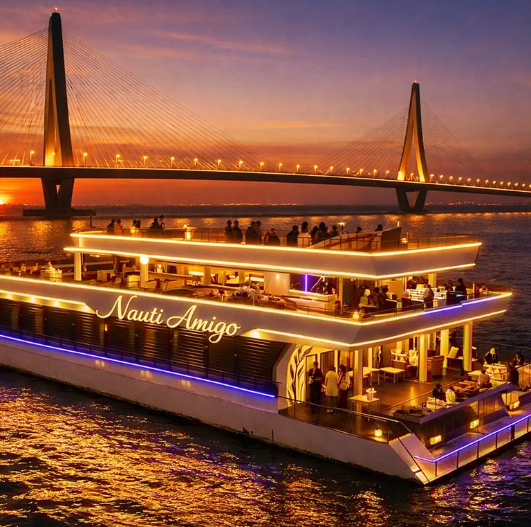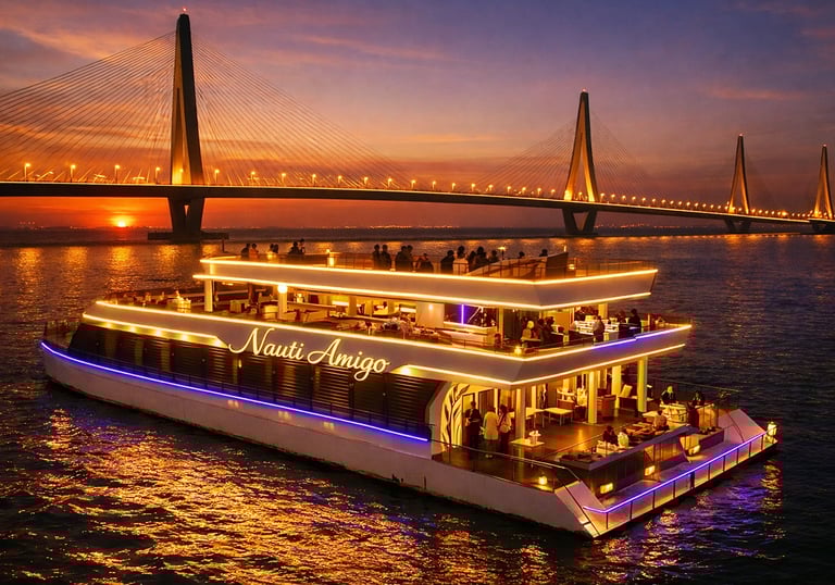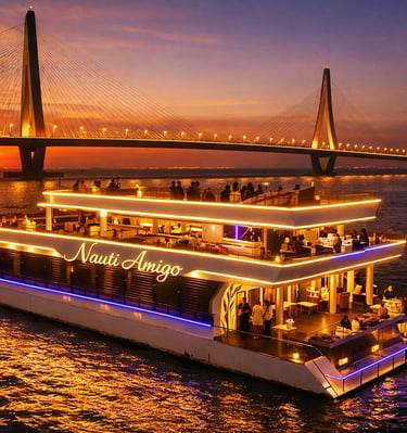 Grand Oceanic Goa offers a premium cruise experience combining scenic Mandovi River views, live DJ entertainment, and unlimited buffet dining.